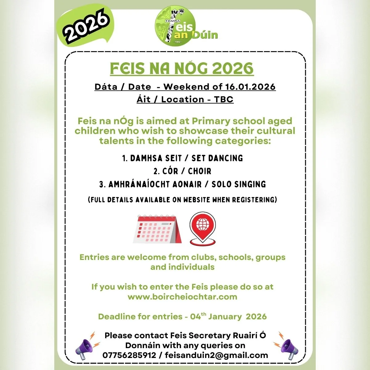 Comórtas Meánscoile Feis an Dúin 2026 / Secondary School Irish Feis Competition 2026